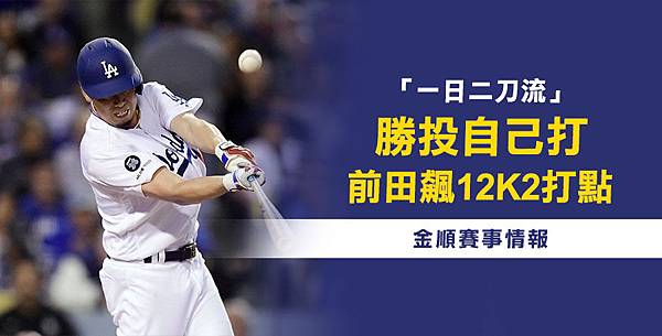 前田迎戰教士披掛先發展現「一日二刀流」功力,飆出12K的優質好投,並靠自己打擊幫球隊打回全場2分,助道奇以2:0擊敗教士。