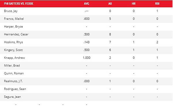 ERICK FEDDE VS費城人