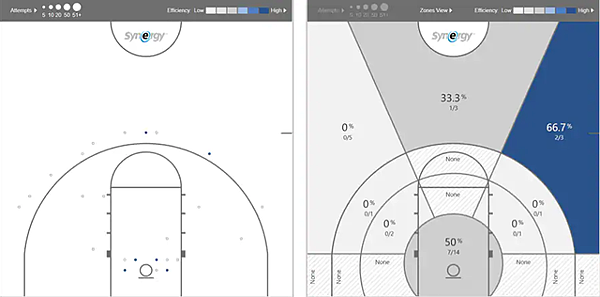 他在轉換進攻中很棒,既能抓下籃板推動反擊,也能在翼側快下強力終結,喜歡跑轉換。