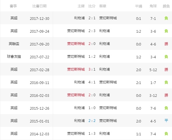 本日推廌:萊切斯特城VS利物浦