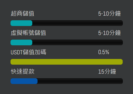 | 提款速度: | 15分鐘 到帳 | ||
